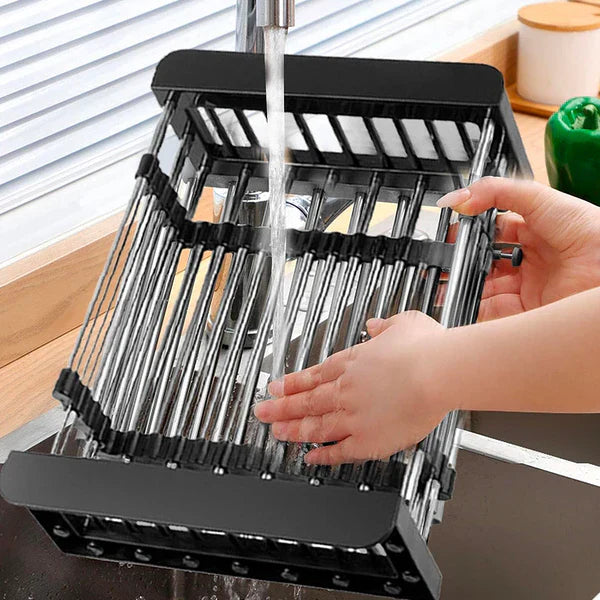 Fabricado com materiais de alta qualidade, este escorredor retrátil é resistente ao desgaste diário e garante uma limpeza sem esforço. A sua superfície fácil de limpar mantém a sua cozinha impecável e higiénica, enquanto o seu design inteligente permite-lhe poupar espaço quando não está a ser utilizado.